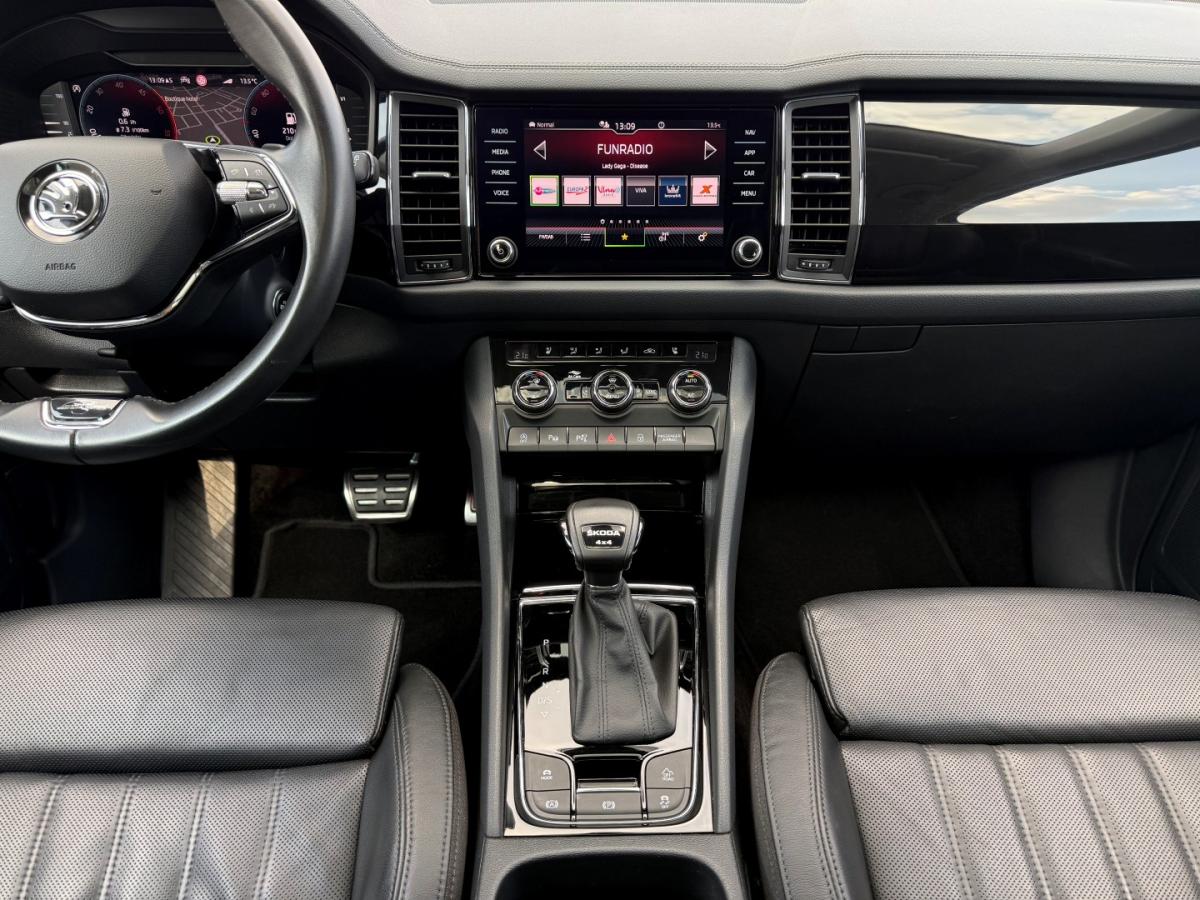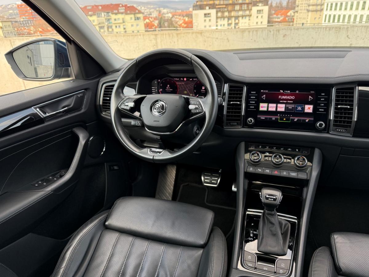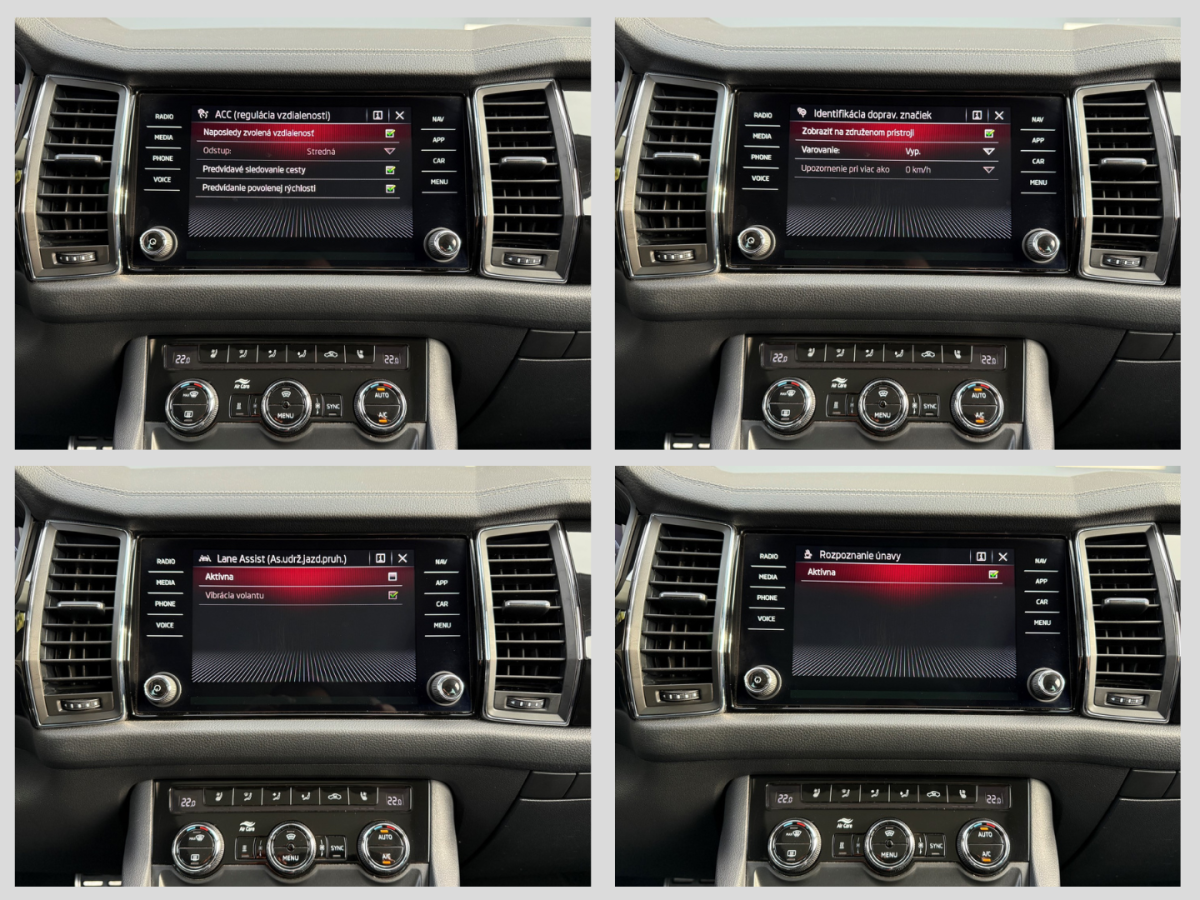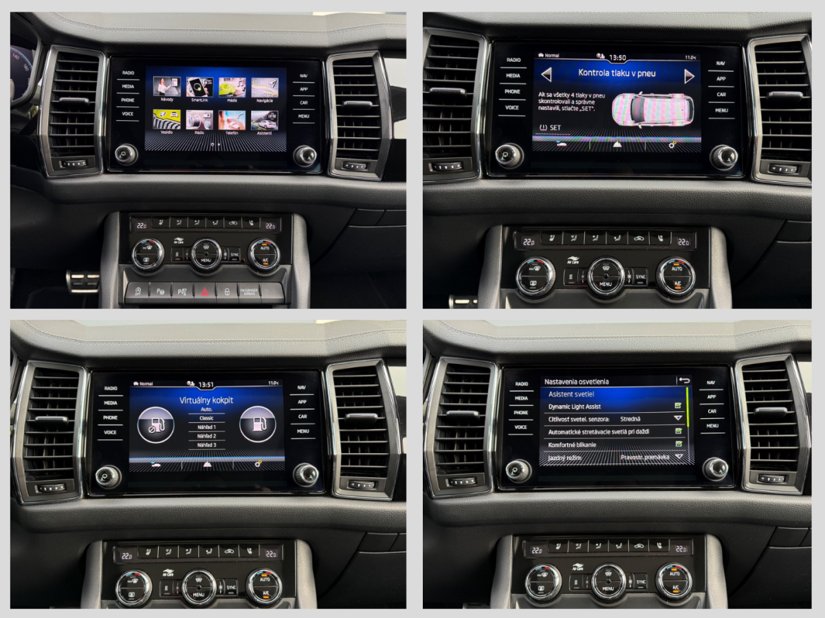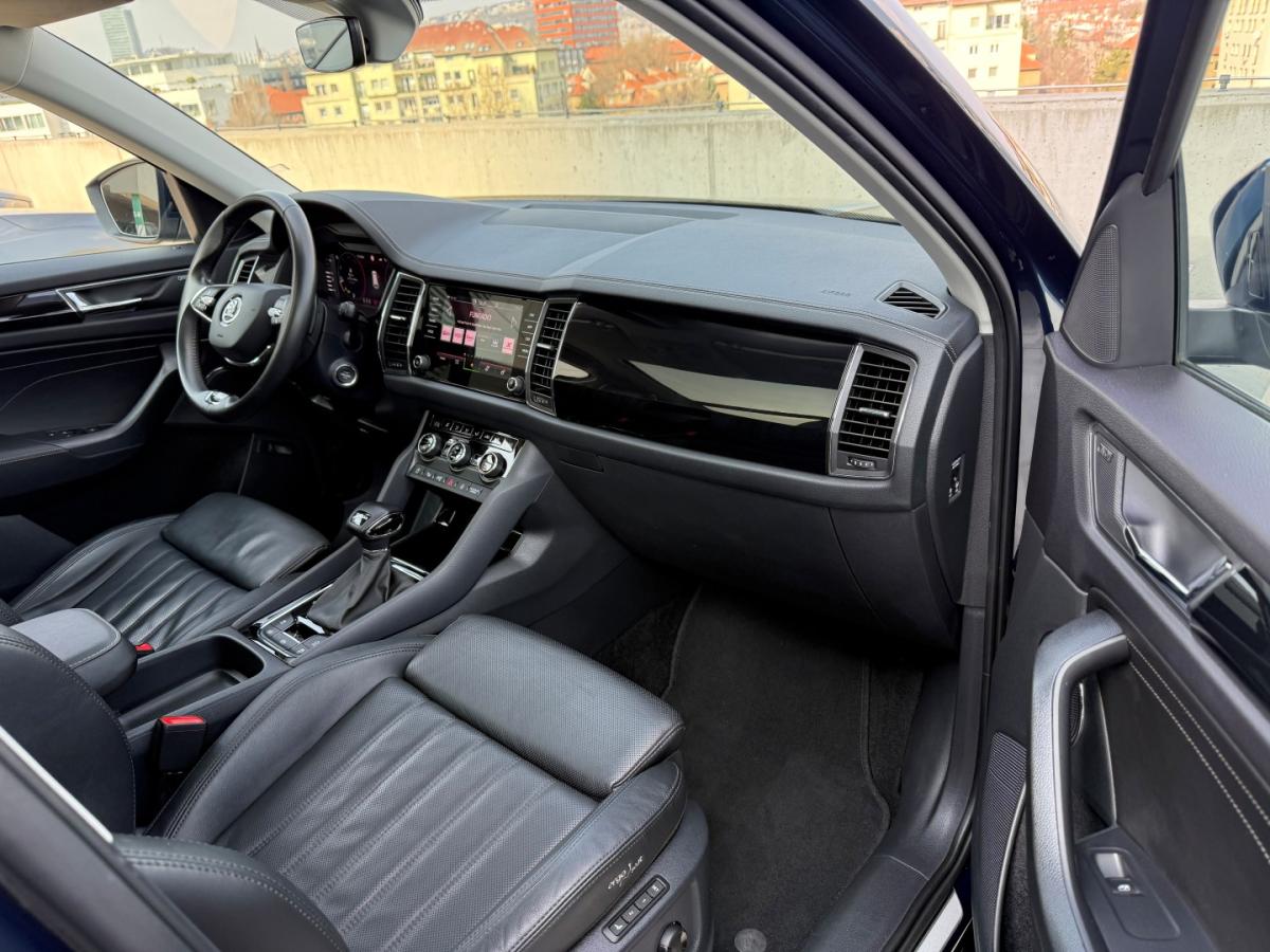 Škoda Kodiaq 2.0 TDI DSG Laurin & Klement 4x4 FACELIFT, Farebný display - Color Maxi-Dot, Adaptívne LED svetlomety (AFS), Bezkľúčové štartovanie a otváranie dverí, Systém rozpoznávania únavy vodiča, Front assist - systém núdzového brzdenia, Lane assist - systém držania vozidla v jazdných pruhoch, Adaptive Cruise Control - adaptívny tempomat do 210 km/h, Side Assist - kontrola mŕtveho uhla, Rozpoznávanie dopravných značiek, Ambientné LED osvetlenie interiéru, Virtuálny kokpit, El. panoramatické strešné okno, Elektricky nastaviteľné a vyhrievané a sklopné vonkajšie spätné zrkadlá s automatickým stmavovaním a pamäťou, SUNSET - sklá s vyšším stupňom tónovania od B-stĺpika, Vetranie predných sedadiel, El. otváranie a zatváranie batožinového priestoru, Nezávislé kúrenie na diaľkové ovládanie, Vyhrievané čelné sklo, Parkovacia kamera 360°, Konektor 230V, LED denné svietenie, Roletky na zadných oknách, Hliníkové kolesá 19" Sirius Anthracite, 2x el. nastaviteľné sedadlá s pamäťovou a masážnou funkciou, Škoda Care Connect, Služba mobility, Funkcia núdzového volania SOS - Tiesňové volanie, Strešné lyžiny eloxované, Automatická klimatizácia Climatronic, Zvukový systém CANTON - 10 reproduktorov, 7-stupňová prevodovka DSG, ISOFIX na zadných sedadlách, Rádiové príslušenstvo: SmartLink+ (Smartgate, MirrorLink, AndroidAuto a Apple CarPlay), Kessy - bezkľúčový prístup, LED hmlovky s integrovaným prisvecovaním do zákruty, Parkovacie senzory vpredu a vzadu s grafickou vizualizáciou, 2x SD karta, 2x USB, Air Care Climatronic..