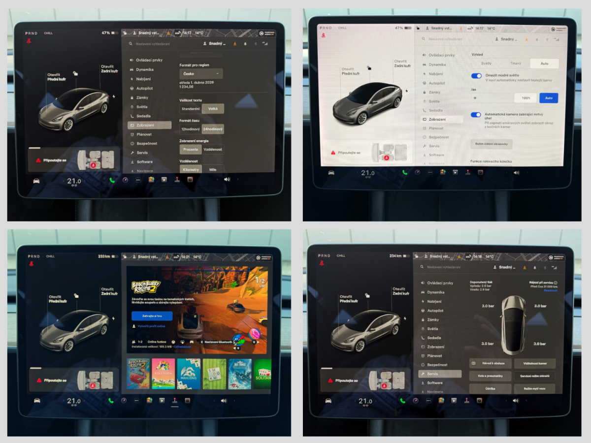 TESLA MODEL 3 LONG RANGE 4WD 366 KW / 498 PS, MATRIX LED svetlá s natáčaním + automatickými diaľkovými svetlami a vyrezávaním o protiidúcich vozidiel, Navigačný systém s 10.25 obrazovkou - displej s HD rozlíšením - funkcia split-screen, 360 kamera, Automatické prepínanie diaľkových svetiel, Plánovanie nabíjania, Autopilot, Výstražný protikolízny systém, Núdzové brzdenie, Automatické zatváranie okien, Hlasové ovládanie entertainmentu, Zadná lakťová opierka, El. otváranie batožinového priestoru, 19" hliníkové disky, Dvojité dno kufra, Tepelné čerpadlo, Bezdrôtové nabíjanie telefónu, Farba biela perleťová, Funkcia mobilný kľúč - prístup/ sledovanie vozidla cez mobilný telefón, Rôzne režimy klimatizácie- Kemp/ Dog/ Udržiavanie, Optický parkovací systém, Pripojenie na Wifi, Internetový prehliadač, Aplikácie Spotify/ Netflix/ YouTube/.., ToyBox, Arkády, SOS núdzové volanie, BT-audio vstup, Automatická el. ručná brzda, Zadné LED svetlomety, 19" hliníkové disky, Farba Biela metalíza, 1x Nabíjačka pre domáce nabíjanie 230V, 1x kábel k wallboxu type 2..